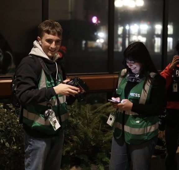 The Emerald’s safety protocols were later shared with student newsrooms across the country, and Tarek appeared on an Oregon Public Broadcasting roundtable discussing student journalists covering protests and high-risk demonstrations. As a newsroom leader, he also worked with the organization’s board to connect staff with mental health resources and support following prolonged coverage of high-stress events.