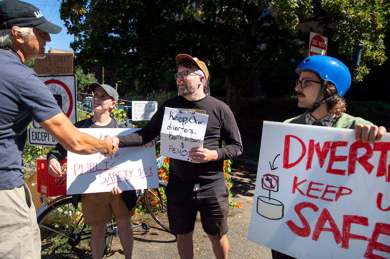 Tarek visited the site of a “traffic diverter occupation” where people were protesting the removal of traffic diverters in parts of the city.
